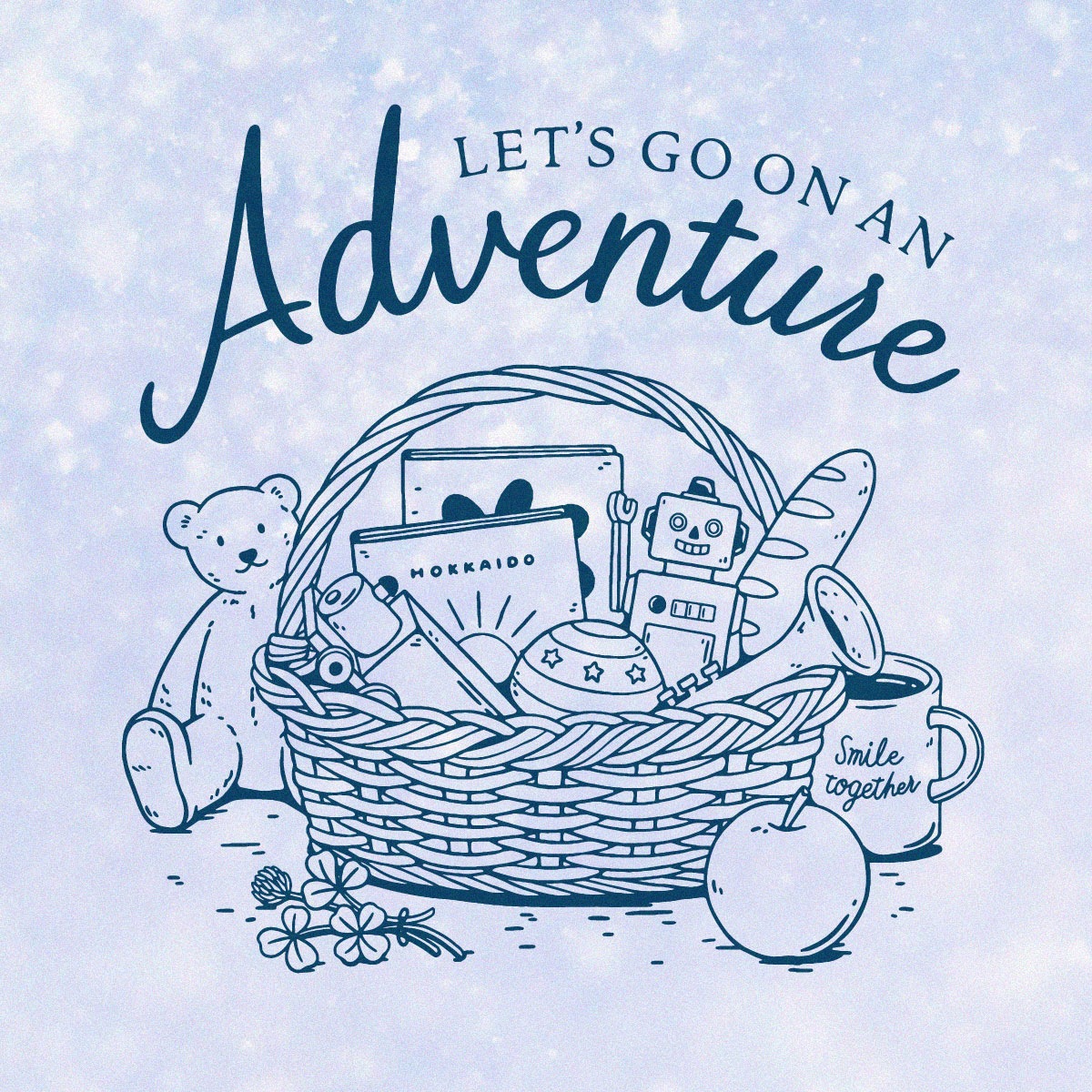 子どもの頃、いや今も?!、たくさん詰まって入っているものに、なんだか心がワクワクときめきました。そんなことを思いながら、今回の北海道こどもホスピスプロジェクトさんとのコラボデザインは、おでかけのイメージのバスケットの中に、おもちゃや絵本、楽器など、こどもが手にとりたくなるようなものたちを詰め込んでみました。