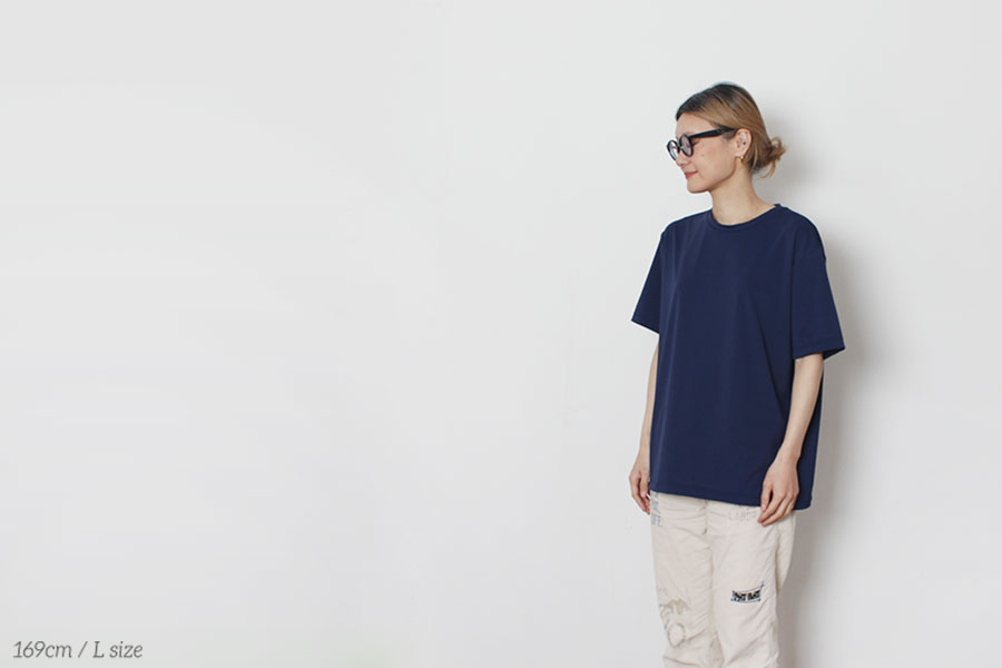 ロンTと同じく、回収されたペットボトルから再生した繊維を使用しています(※ポリエステル92%、ポリウレタン8%。廃ペットボトル由来の再生プラスチック100%使用)。