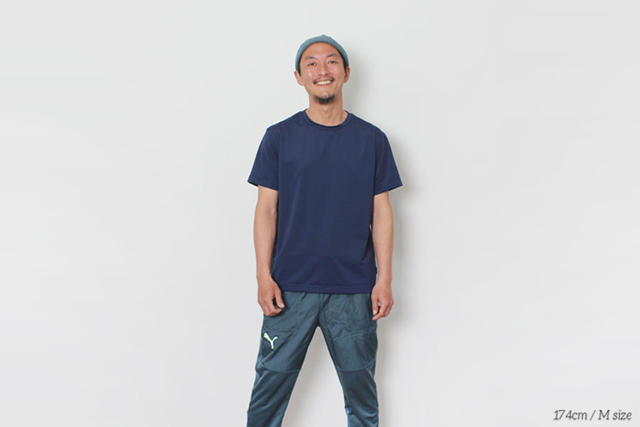 サラッとしていてストレッチの効いた生地は、速乾・吸収性に優れ、さまざまなスポーツシーンで活躍すること間違いなし!!