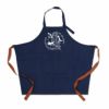 肩紐を首にひっかけるタイプのエプロンになります。身長やお好みに合わせ、肩紐の長さを調節できます。肩紐の片側をエプロンの輪っかに通し、お好みの位置で結んでください。