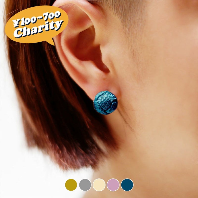 JAMMINの人気アイテム・京くみひものブレスレットを作っていただいている京都・宇治の「昇苑くみひも」さんに作っていただいた、くみひもの伝統的な結びの一つである「小田巻(おだまき)」を使ったオリジナルピアス/イアリング。