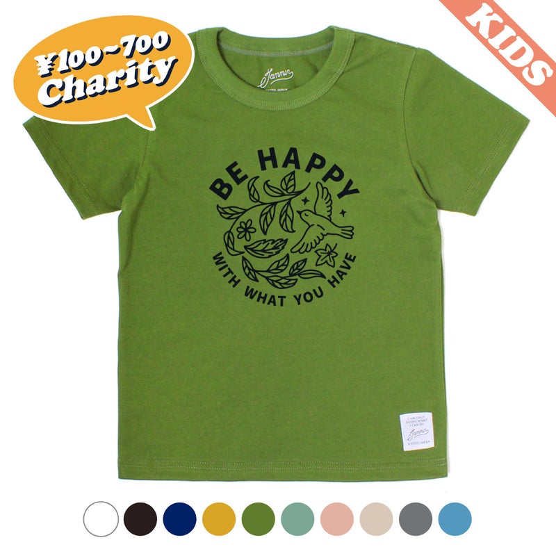 JAMMINの代名詞と言えるチャリティーTシャツに、キッズサイズが登場!ベーシックカラーのホワイト、ネイビーに加え、人気のカラーを加えた色展開!