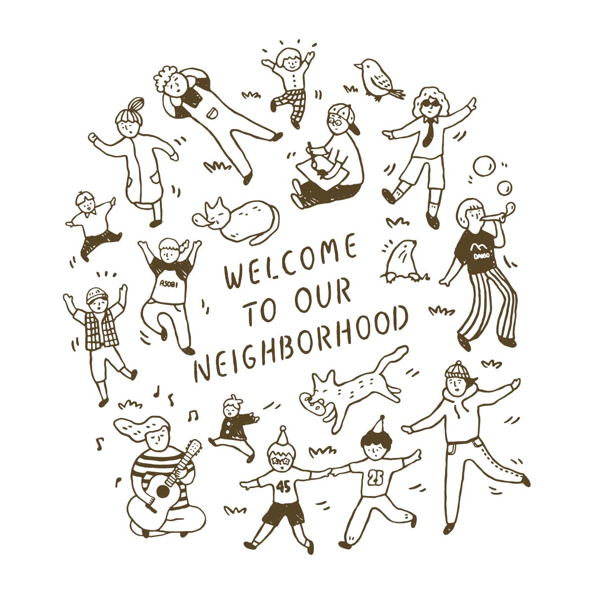 “Welcome to our neighborhood(僕らの近所へようこそ)”というメッセージには、互いの存在を受け入れ、支えたり支えられたりしながら、笑顔で過ごす温かい地域への思いを込めました。