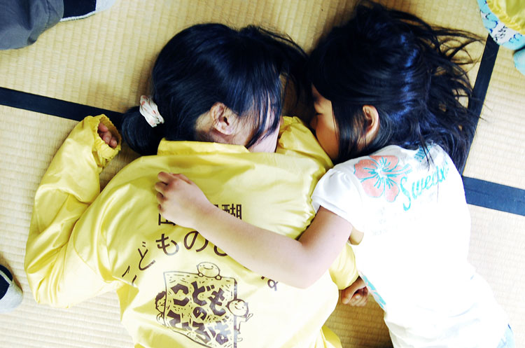 「わんぱくクラブ」の活動中、こどもと一緒にお昼寝。「こどもも大人も、ありのままでいられる活動を大切にしています」