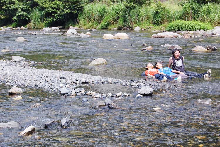 サマーキャンプでの一コマ。こどもたちと一緒に川で涼むスタッフ。「こどもも大人も、一緒に楽しむことができる時間がありました」