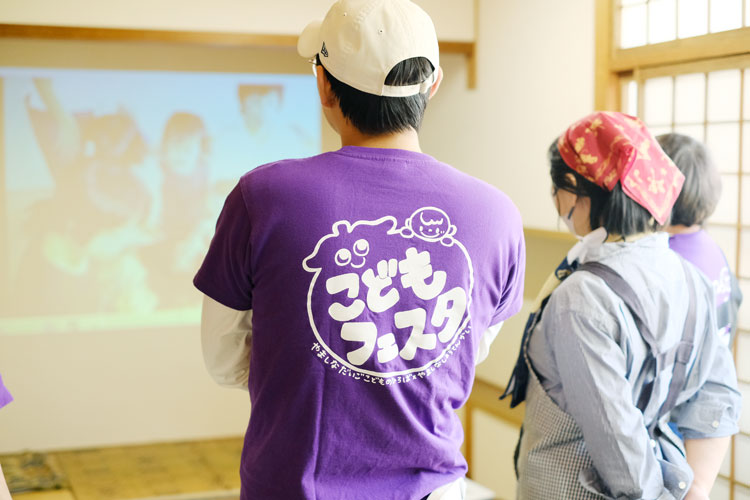 こどもフェスタでの一枚。「昔は参加者だったこどもが、今ではスタッフに(写真左)。当時のスライドを懐かしみながら、彼のお母さん(写真右)と一緒に見ていました」