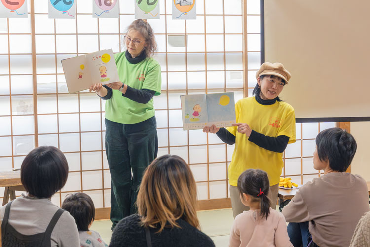 「こどもフェスタでは、スタッフの方の一人が山科在住の『ことえほん』さんにご協力をいただき、遊びコーナーの一つを担当してもらいました」