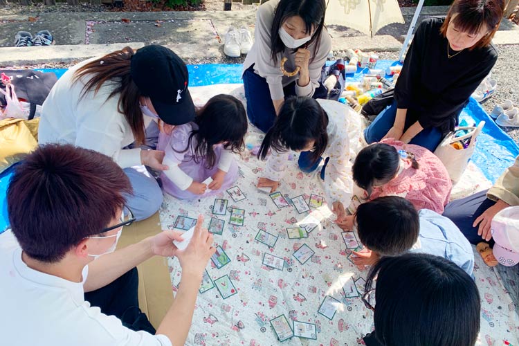 地域主催の飲食イベントにて、遊びコーナーを出店。「山科地域のいろんなもの・ことを題材に、子どもたちの絵と言葉を使ってその良さを表現した『山科かるた』や、缶積み、授乳コーナーも設けて、誰でも参加しやすいように工夫しました」