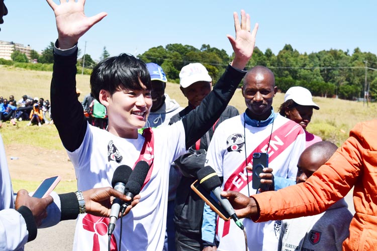 お話をお伺いした高村さん。2026年1月9日に、ケニアにて初の駅伝大会を開催。地元メディアの取材を受けているところ