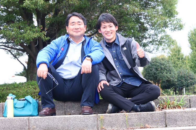 「母校・帝京大学の中野監督に、教員を退職し、NPO法人を立ち上げることを伝えた時の写真です。『お前は絶対、立派な教員になれる』と卒業式の時に言っていただき、3年間かけて教員採用試験に合格しました。その合格を報告した時には、とても喜んでくださいました。退職を伝えた時も『マイナスな理由で退職するなら止めるけど、目標や夢があるなら俺は応援する』と背中を押してくださいました。中野監督は現在、NPO法人襷のアドバイザーも務めてくださっており、さまざまなアドバイスをもらいながら活動を進めています」