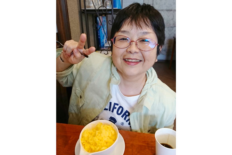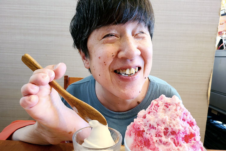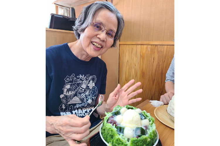 「だんだん見えにくくなる病気になって落ち込むこともあったけど、みんなと一緒だと、ついつい楽しくなって『スペシャルかき氷を注文しちゃったぁ!』と笑顔の矢野さん」