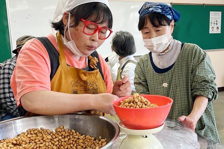 みんなでお味噌作り。「みえなくても、感覚で重さぴったり!見える人と協力すれば、さらにバッチリ!」