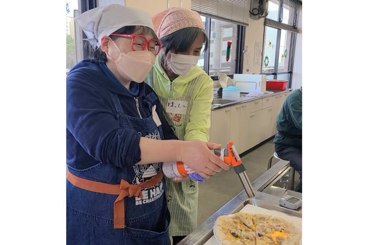 「元ピッツア職人の陽介さんは、病気でみえにくくなったことで、食品を扱う仕事ができなくなりました。だけど『大好きなピッツア作りで、食べる人の笑顔が見たい!』と、本格ピッツアづくりのワークショップを開催しています。ふわふわ生地に、思い思いのトッピング!バーナーでこんがり焼き色のついたチーズは、ビヨーンとどこまでも伸びて、最高!」