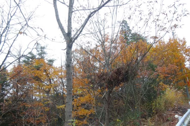 秋田県で見つけた「クマ棚」(クマが木に登って実を食べるときに枝を折って作られる鳥の巣のような形のもの)
