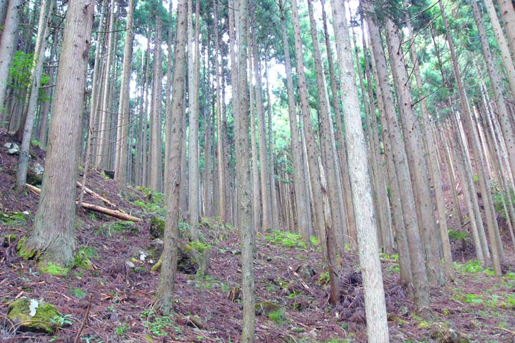 放置された人工林(兵庫県)。下草もなく、地面がむき出しになっている