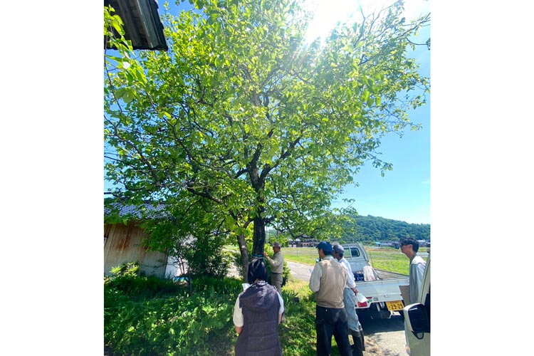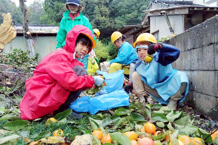 豊岡市での防除活動。「2025年は柿が生り年で、たくさんのボランティアの方に参加していただき、柿もぎを進めました」