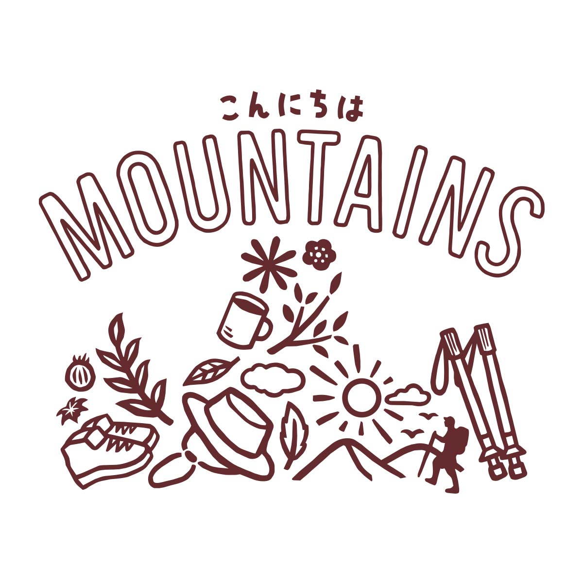 山の道具や山の自然を、「山」の字のシルエットに見えるように描きました。