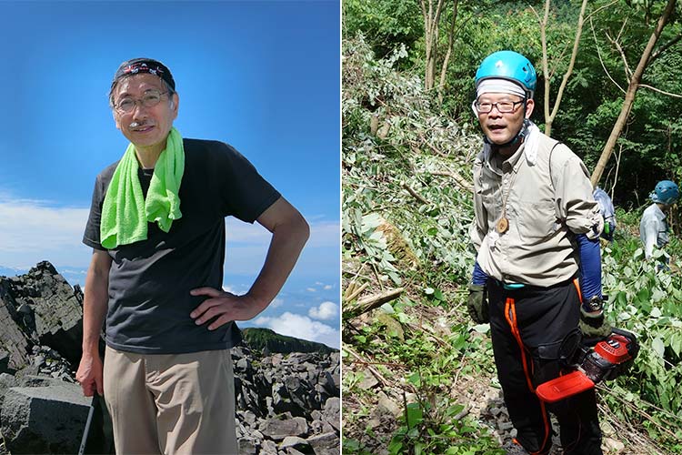 「山に行くと、山の仲間の温かみを体で感じる」と話すのは、日本山岳会理事の大塚哲生(おおつか・てつお)さん(68)と、広報委員会の永田弘太郎(ながた・こうたろう)さん(74)。