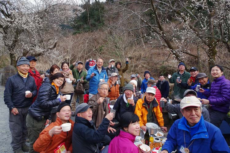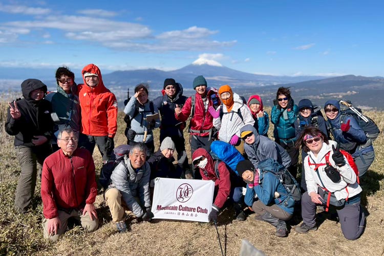 仲間たちと山を楽しむ永田さん。「新年山行にて、熱海にある玄岳での集合写真です。この後、熱海の遺跡などを訪ね、熱海温泉施設で新年会を行います」