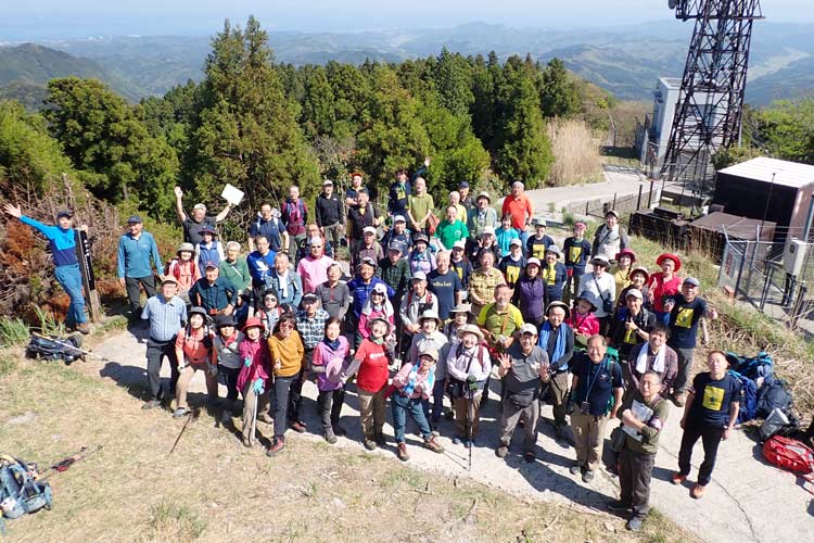 山岳古道調査チームが主催した大分県国東半島での集中山行。両子山山頂での集合写真