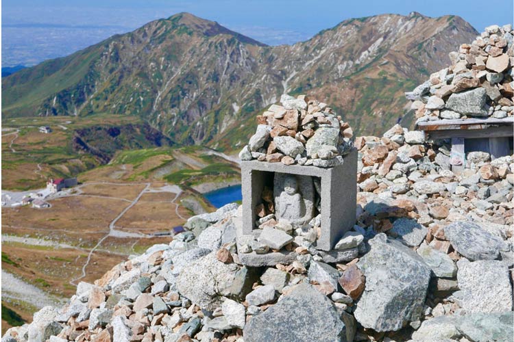 立山の一ノ越から雄山山頂に向かう登山道脇の石仏。江戸時代、富士山、白山とともに日本三霊山のひとつで、多くの参詣者が峰をめざした