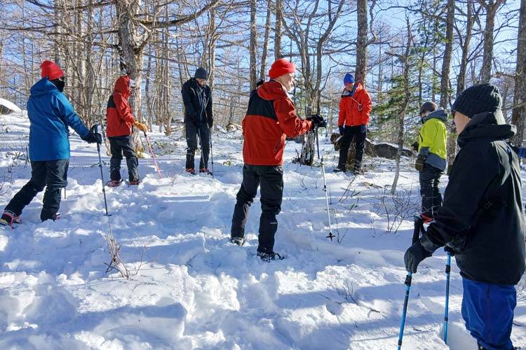 山の講習会。アイゼン講習、ワカン講習、雪崩講習など、安全対策の一環として各支部で行われている