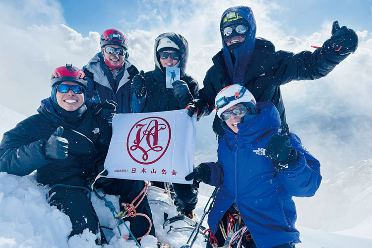 120周年記念事業のひとつ、ヒマラヤキャンプ。未来の登山文化の発展のために、日本山岳会が120年かけて培ってきた登山文化を次世代に受け継いでいる。写真は2025年、若手会員を中心としたチームが、2025年にネパールのビジョラ・ヒウンチュリ(6111m)に初登頂した時の一枚